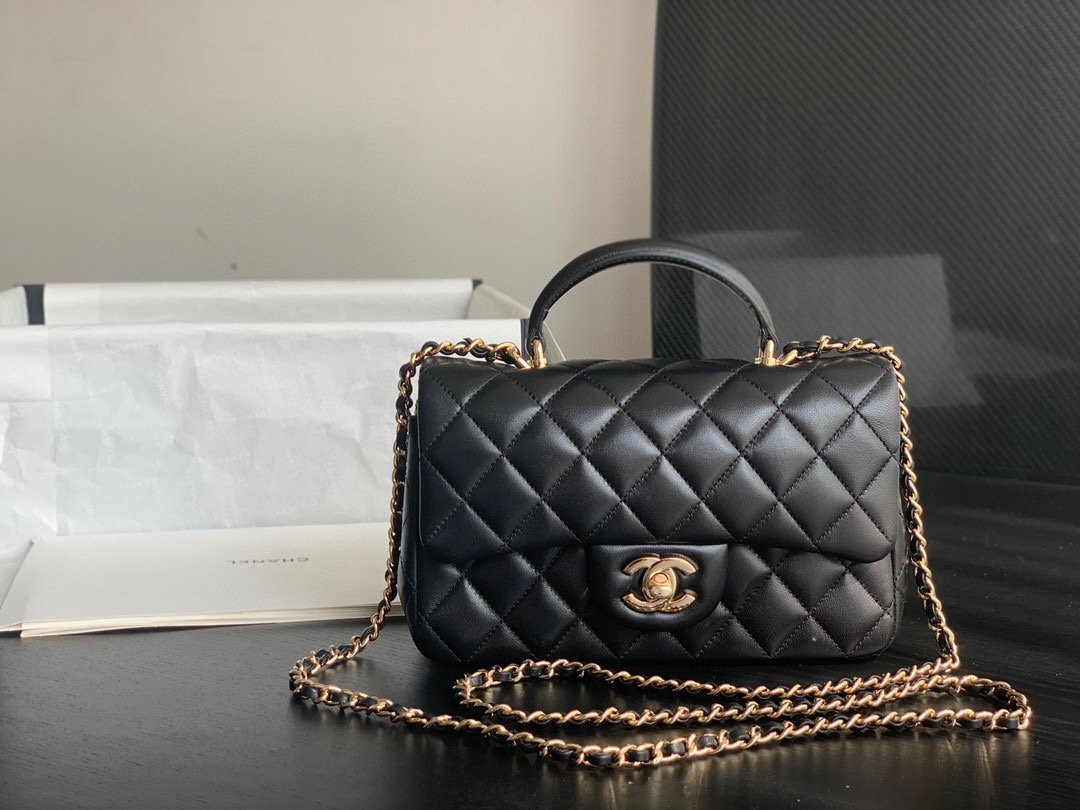 Chanel Classic Flap Mini Top Handle – Black GHW – 20cm – AS2431