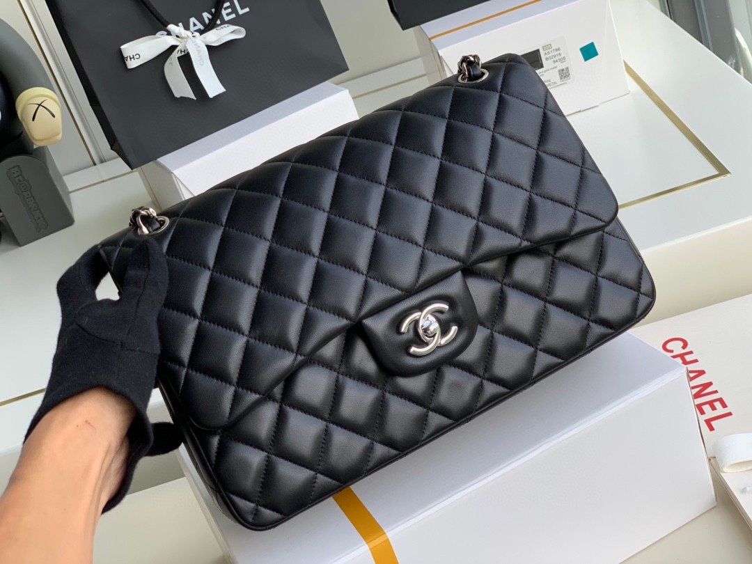Chanel Classic Jumbo Flap Bag – Black Lambskin SHW – 30cm