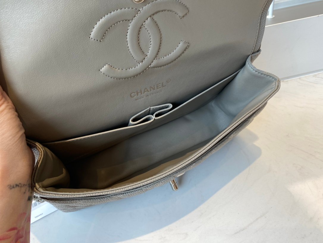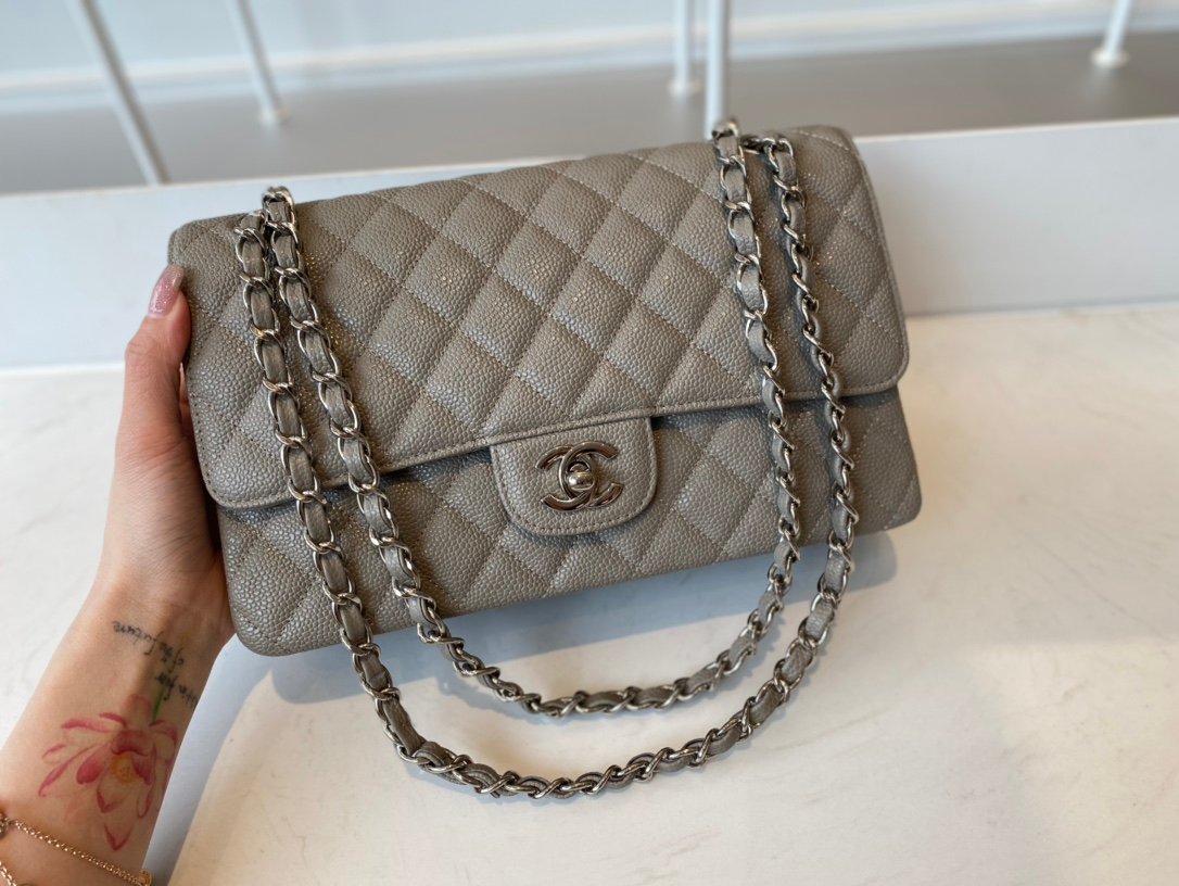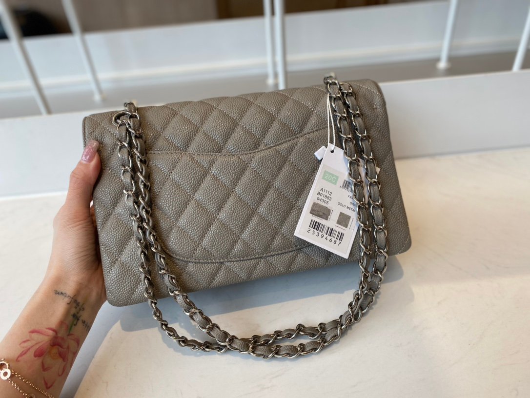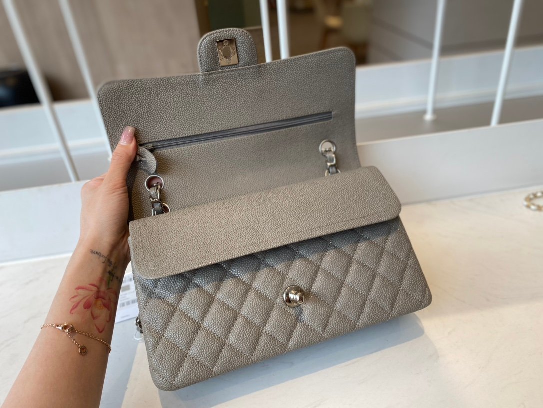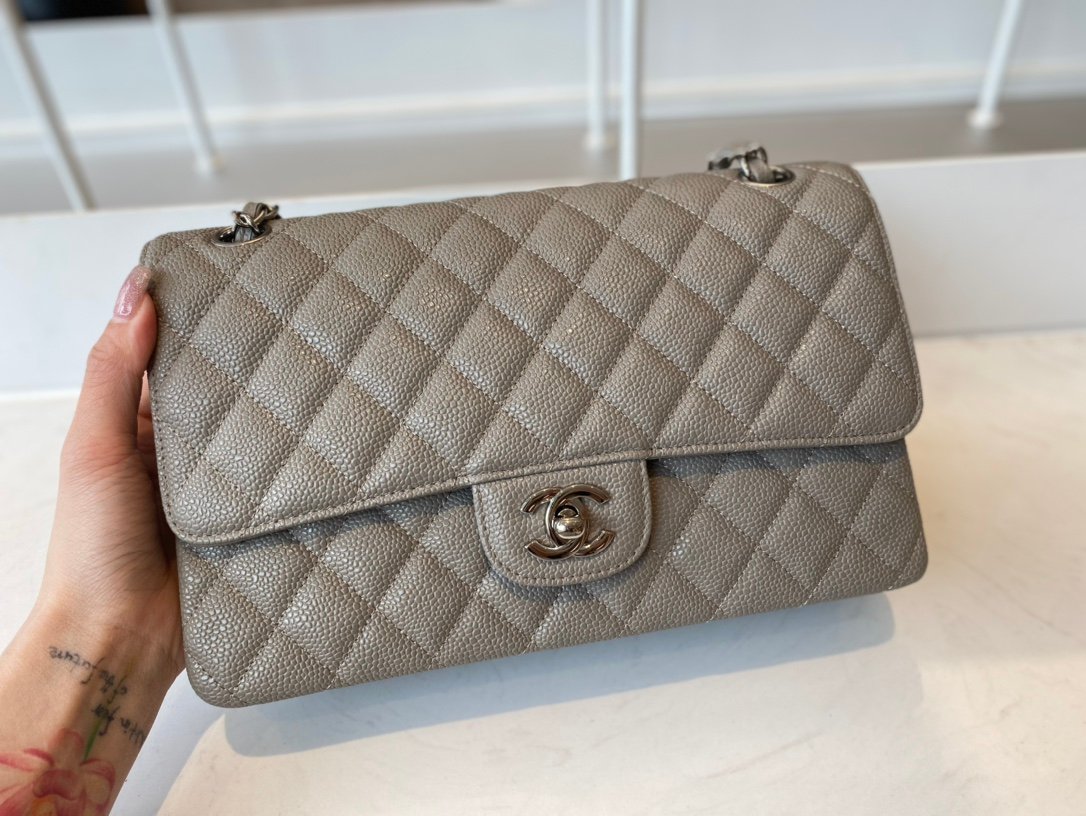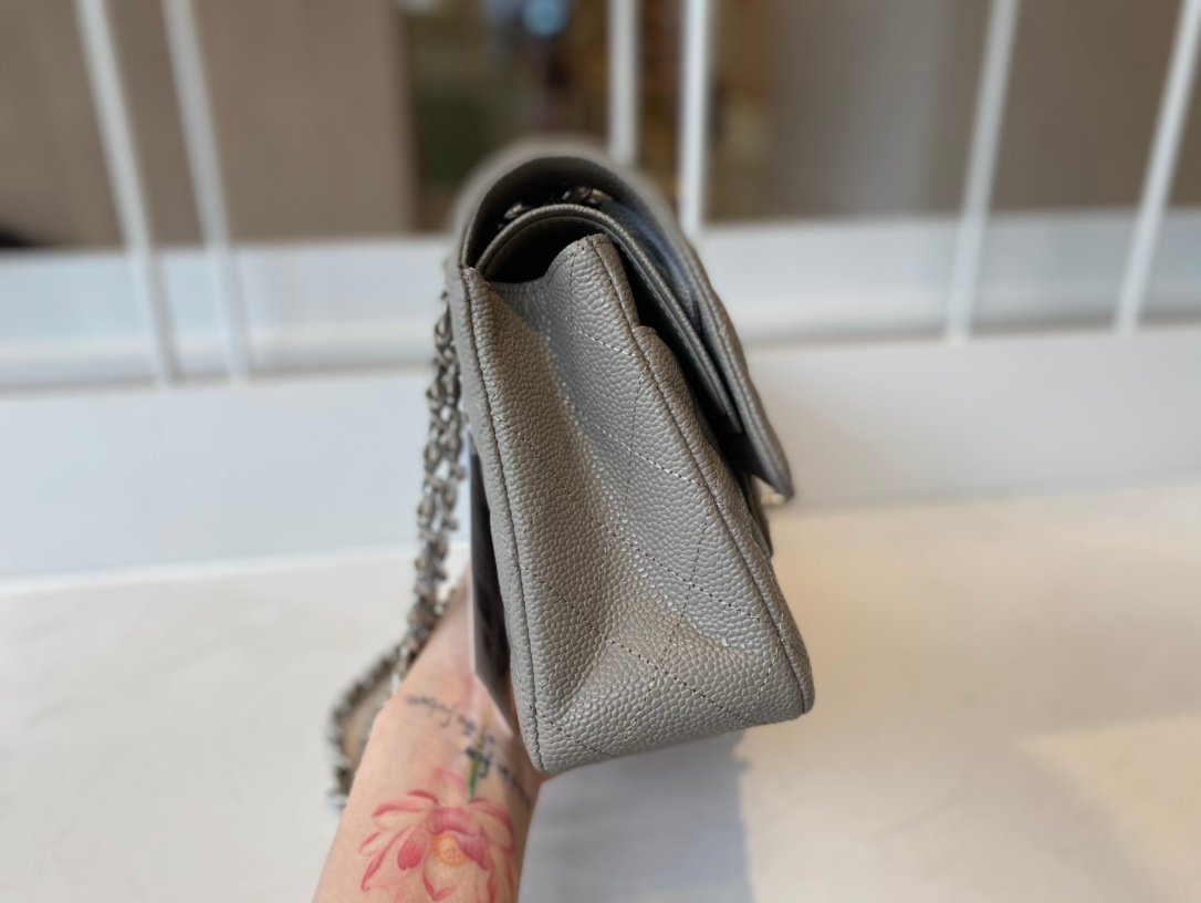 Chanel Classic Medium Flap Caviar – Gray SHW – A01112 – 25cm