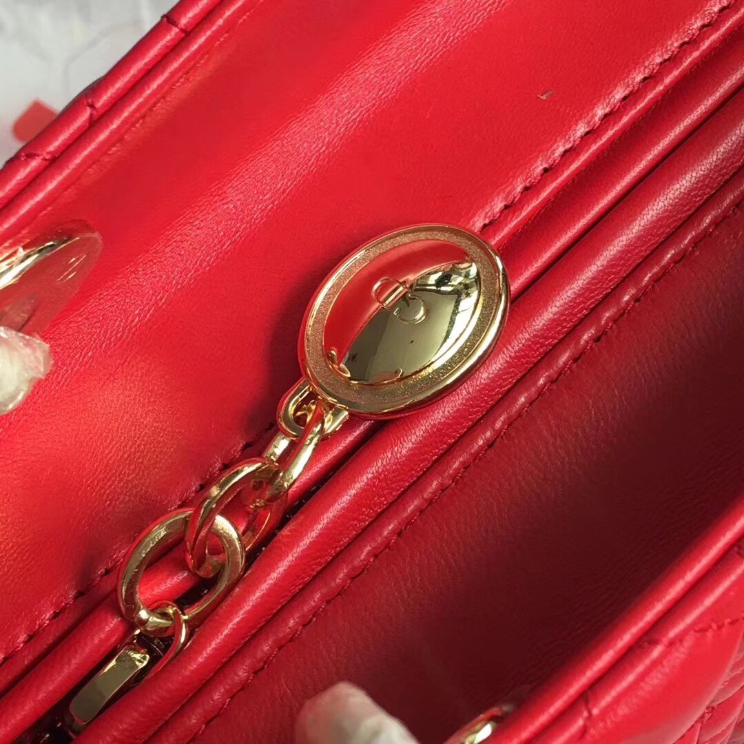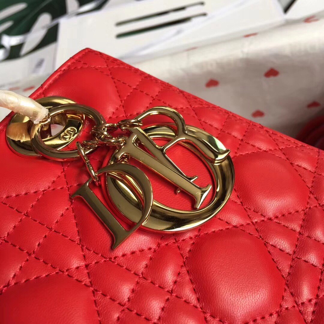 Dior Lady Medium – Red Cannage Lambskin – GHW 24cm