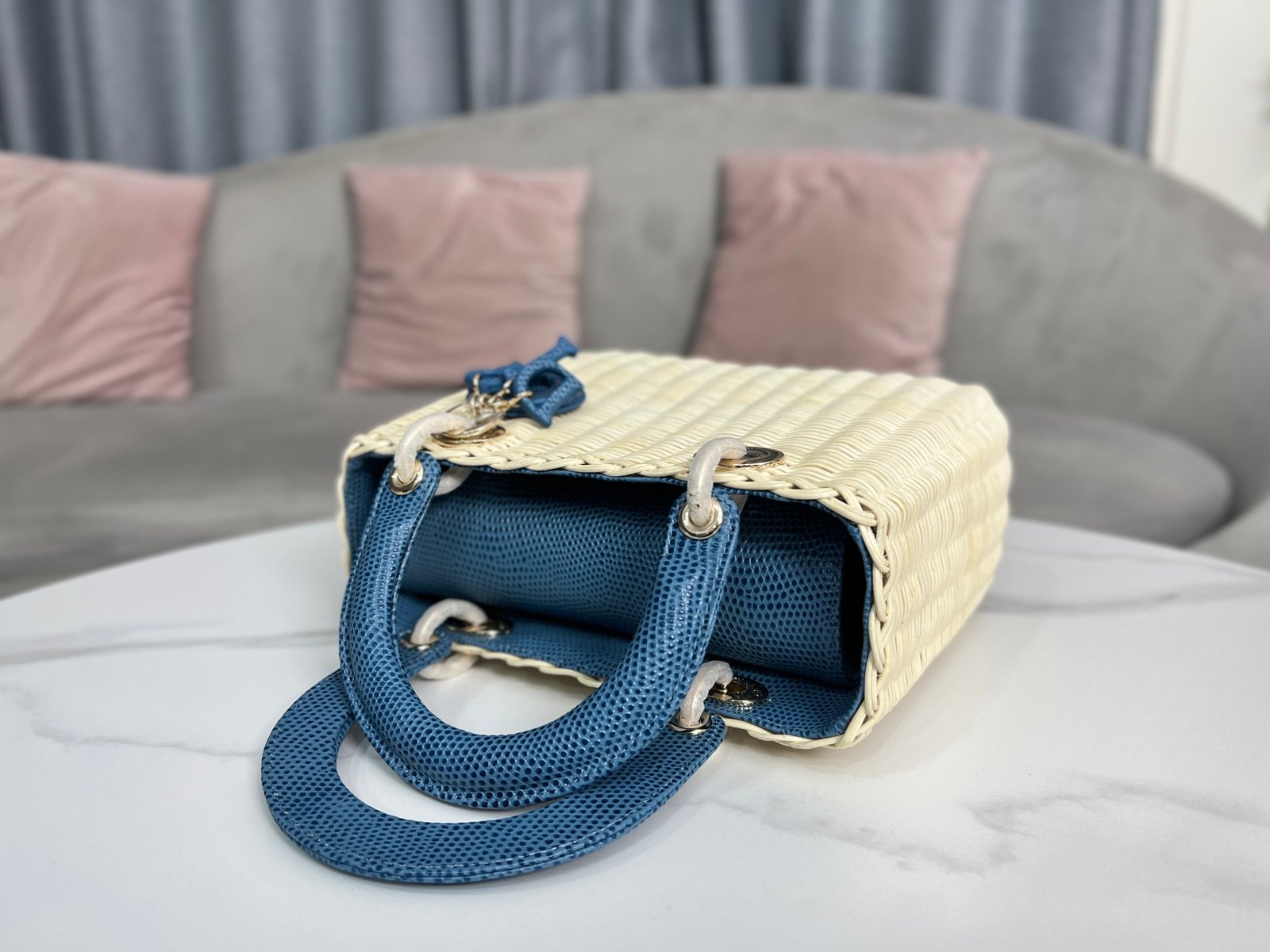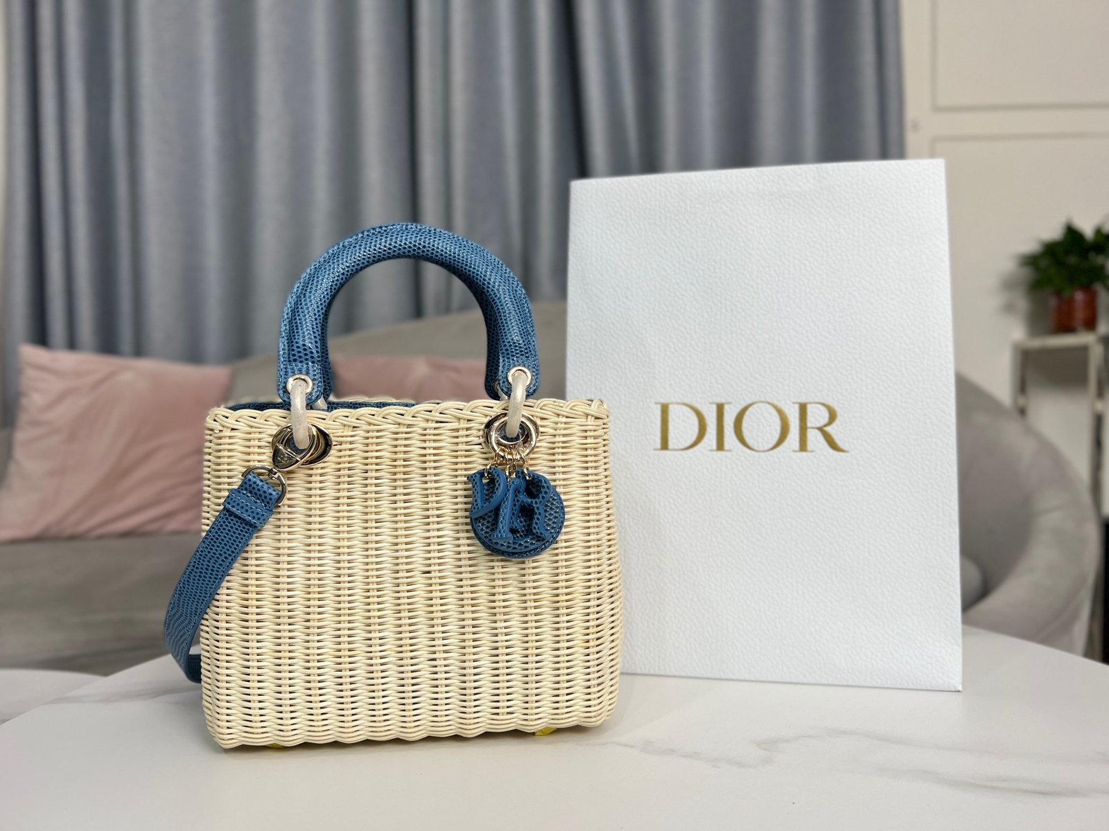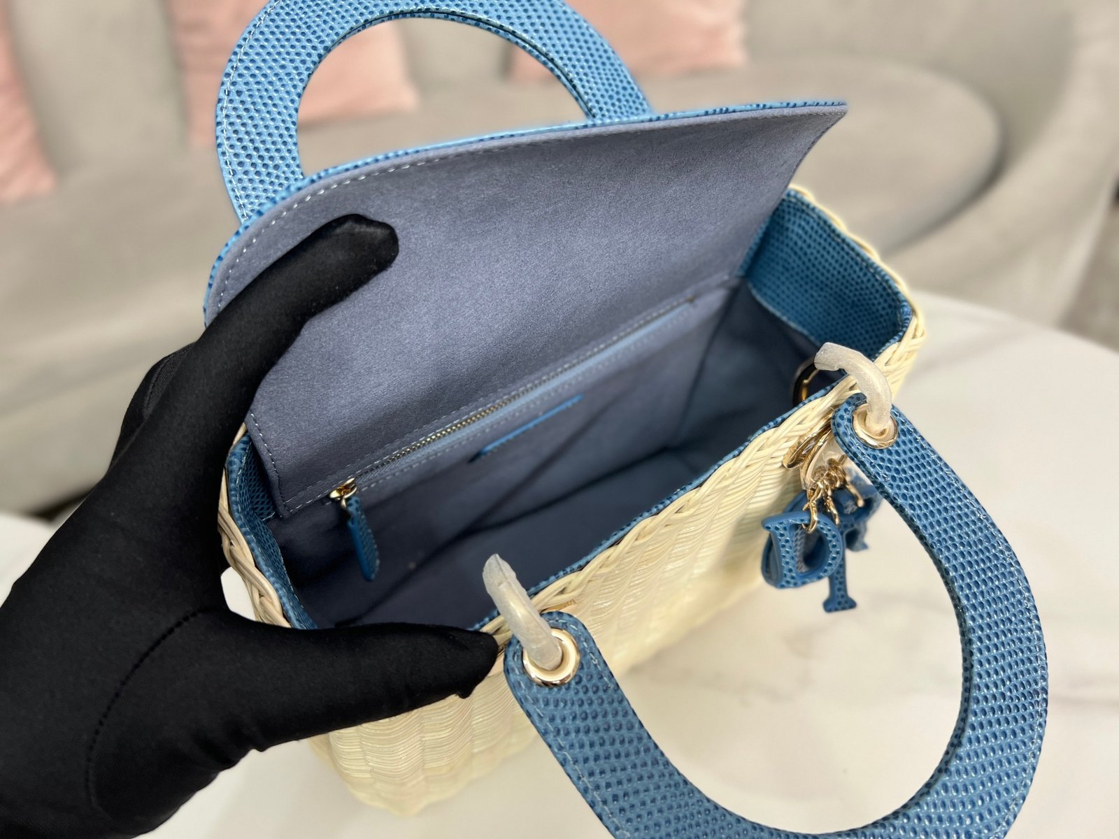 Dior Lady Medium – Woven Blue – 24cm,