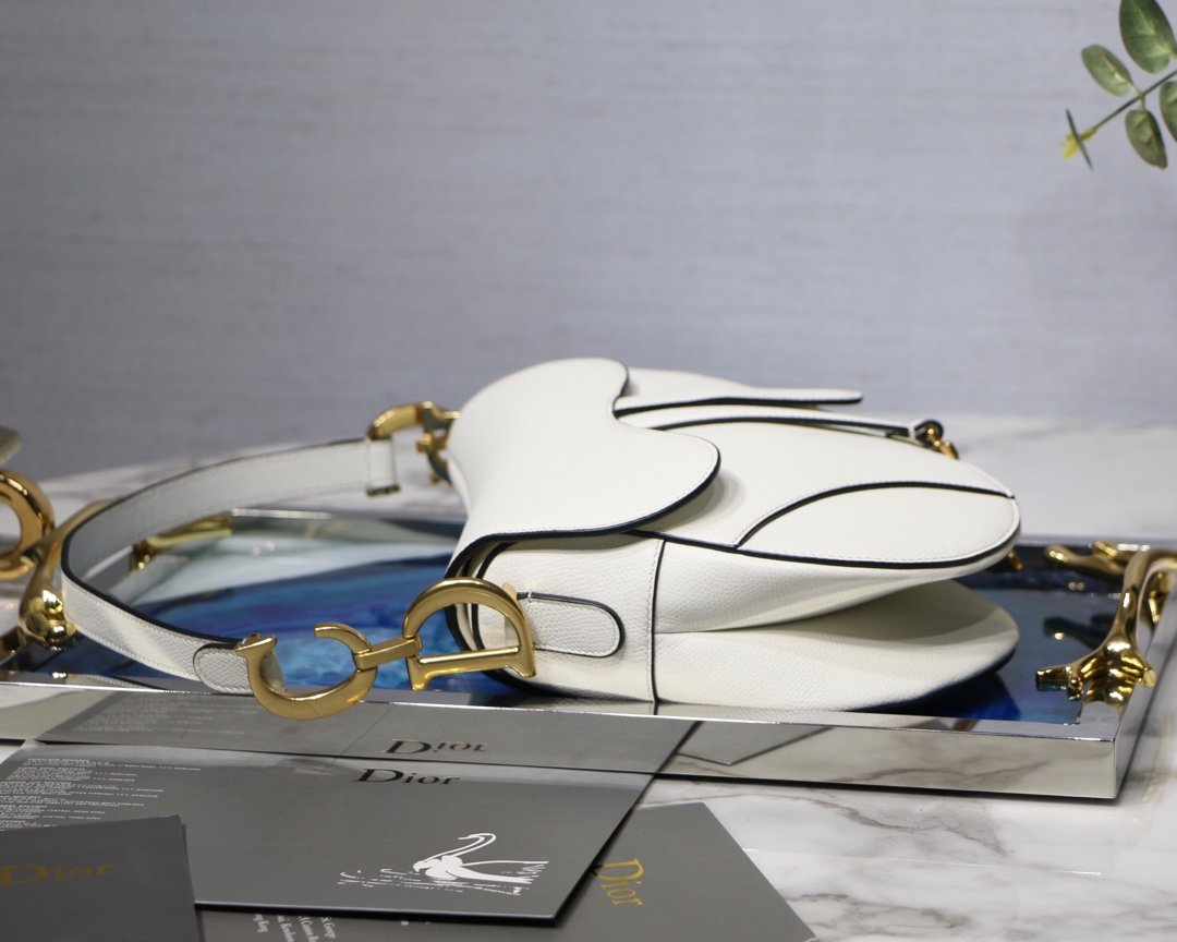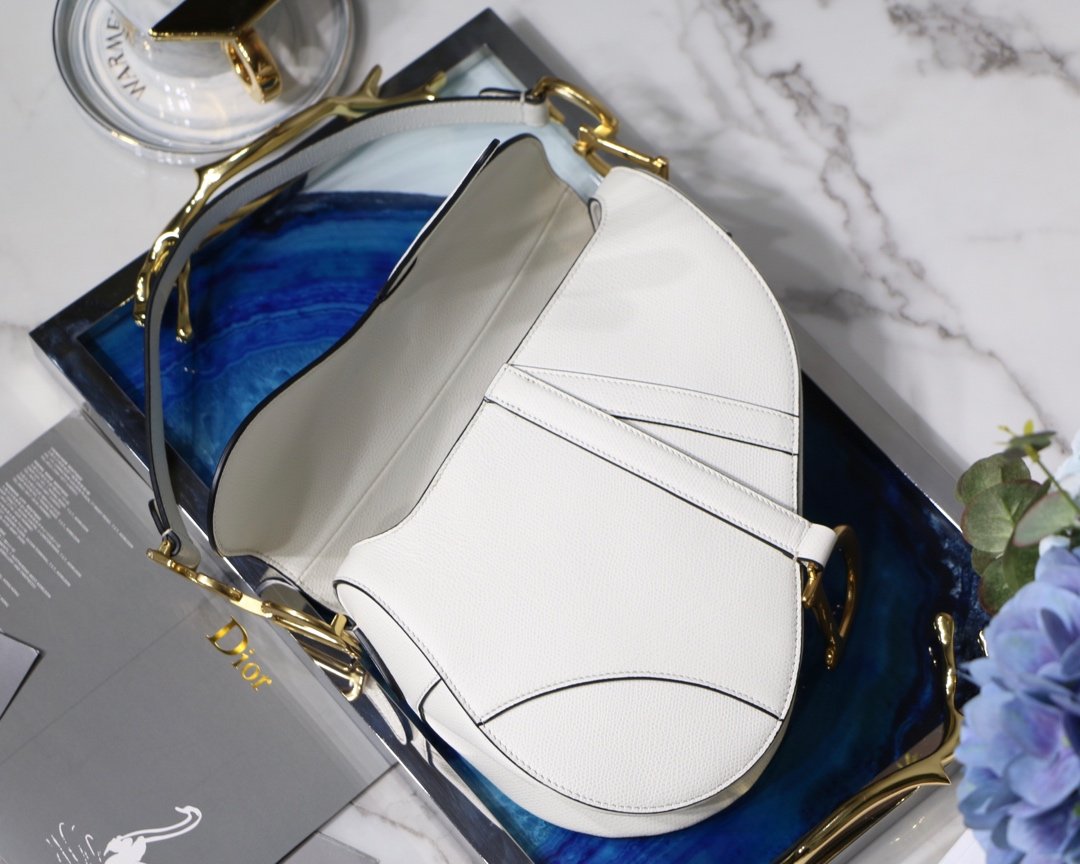 Dior Medium Saddle Bag – White Grained Calfskin – GHW 25.5cm