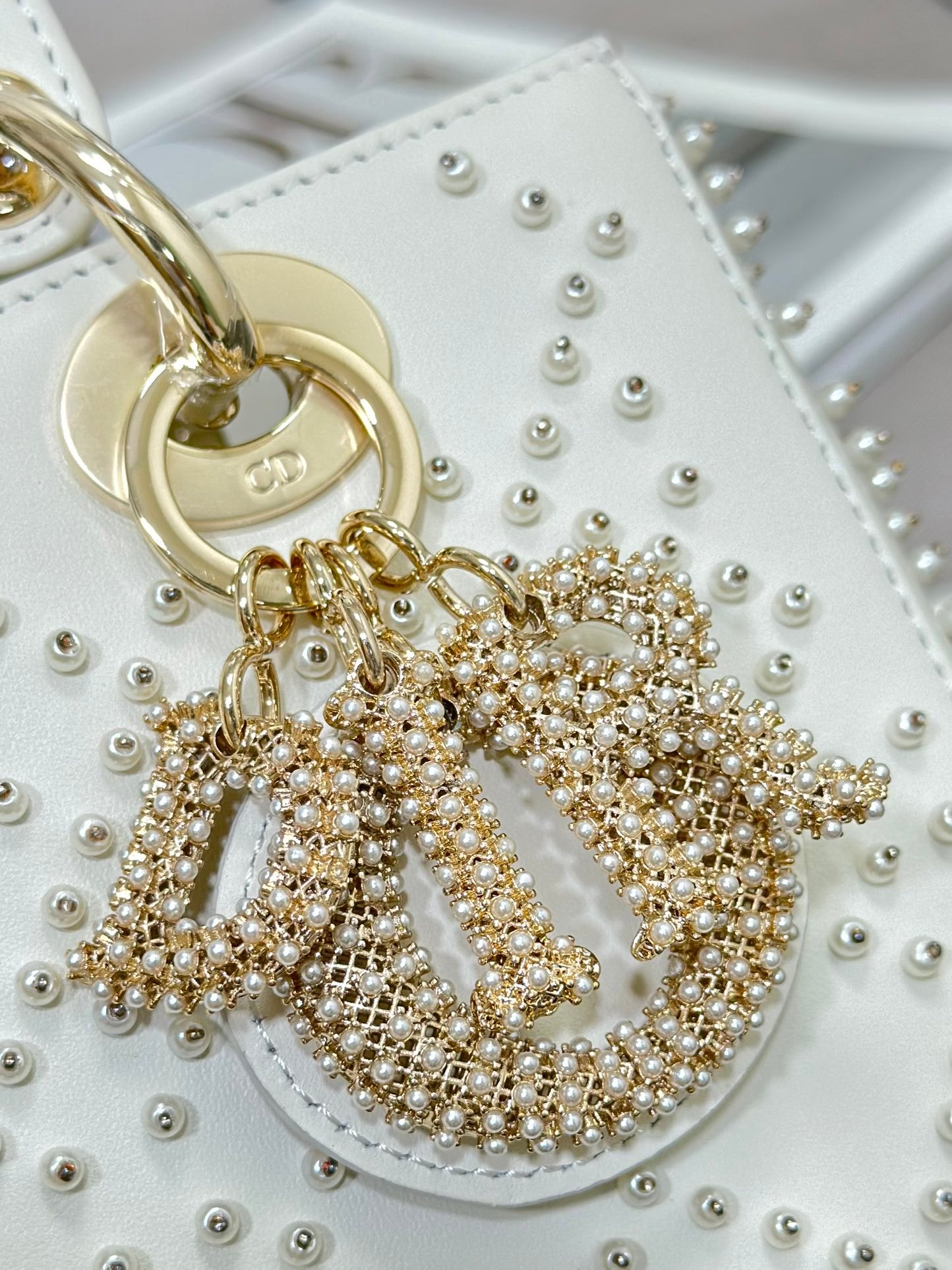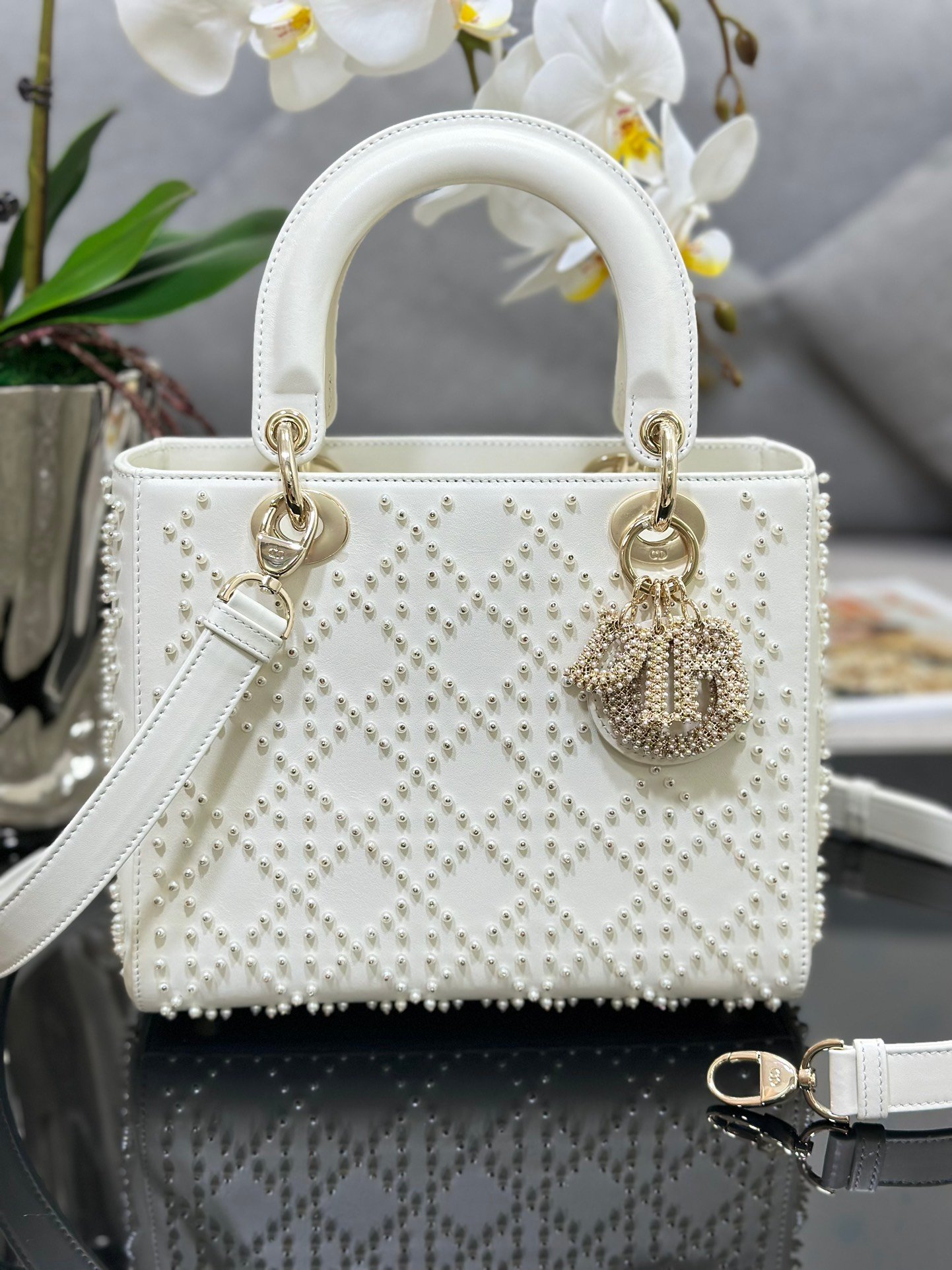 Lady Dior Medium Bag – Off White – Pearl Embroidery 24cm