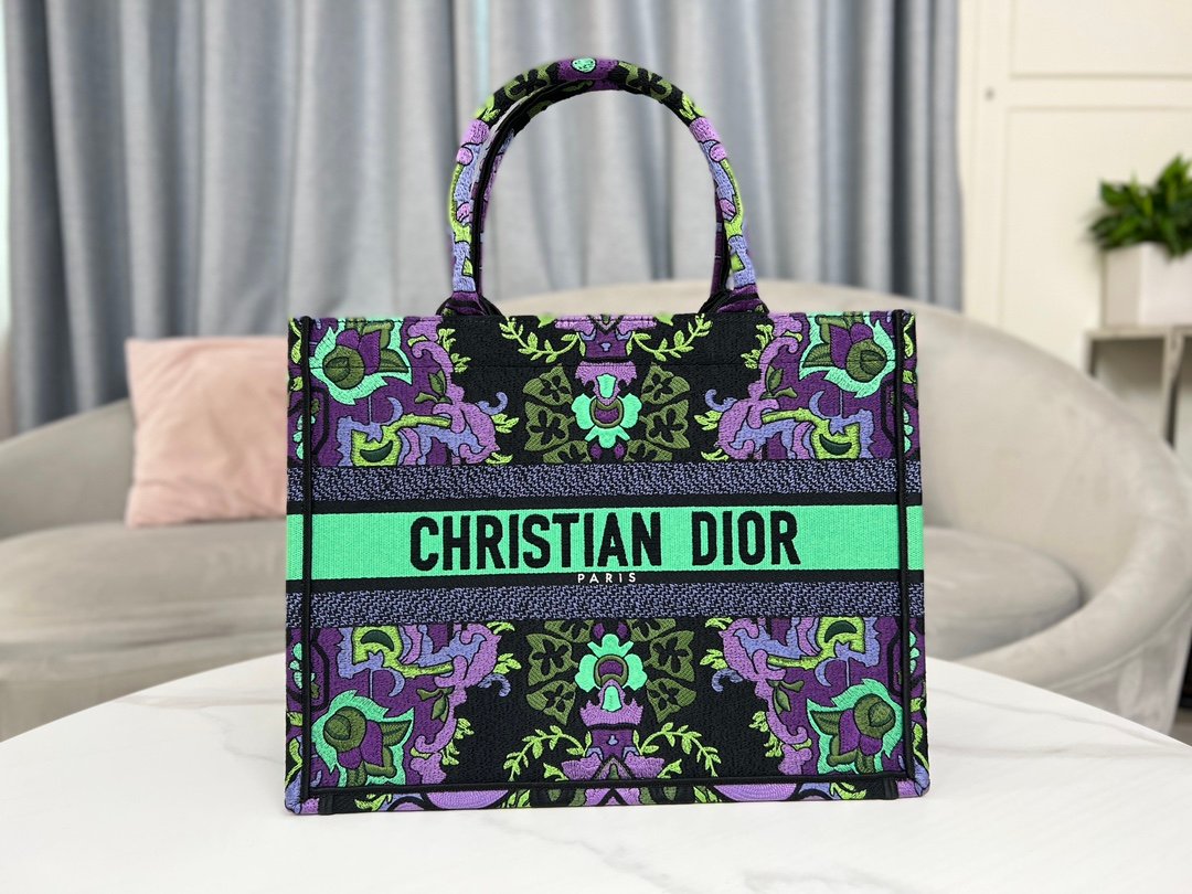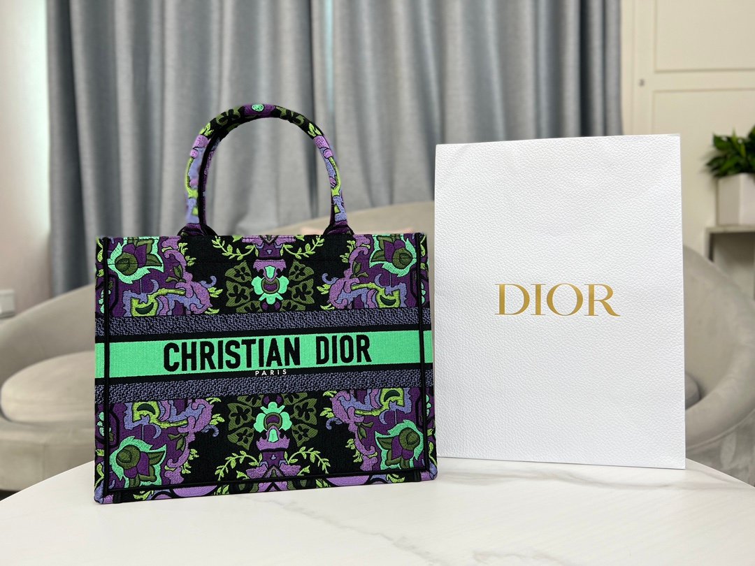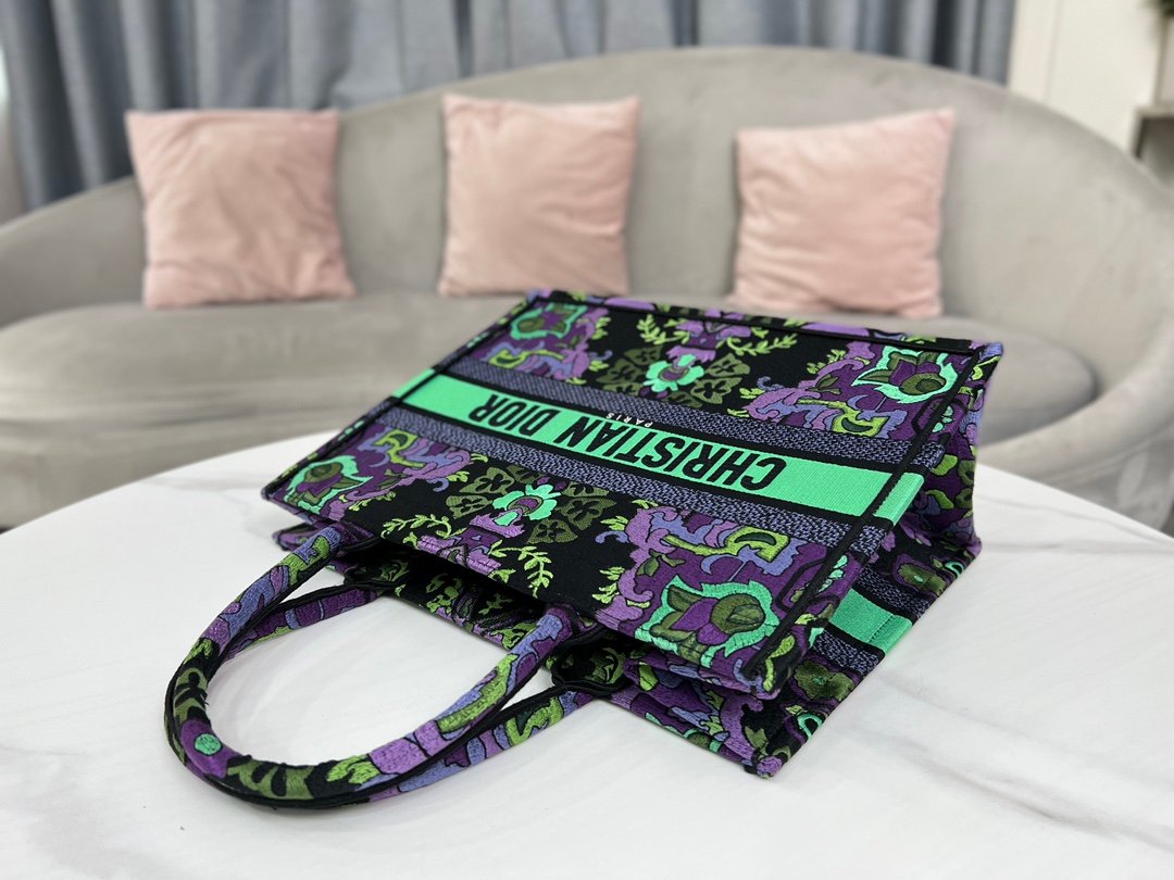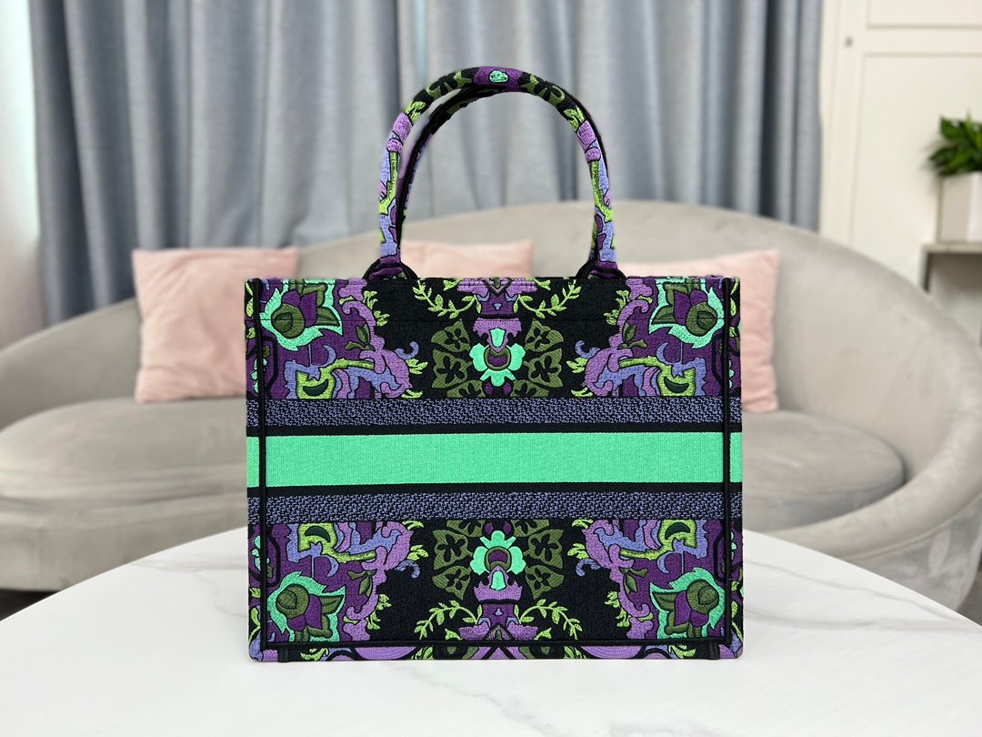 Medium Dior Book Tote – Indian Purple Flowers Print – 36.5cm