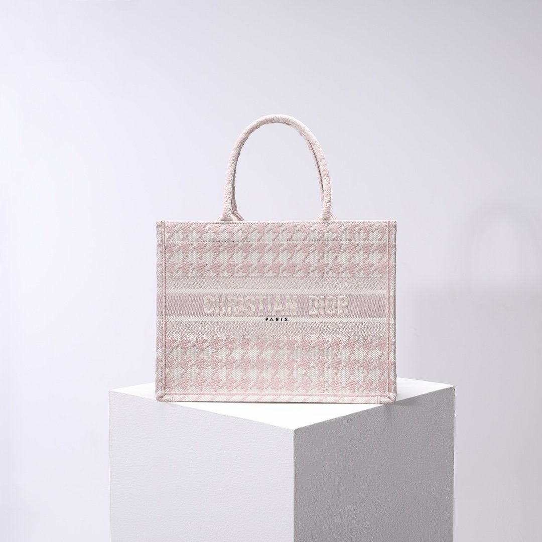 Medium Dior Book Tote – Light Pink Macro Houndstooth – 36.5cm