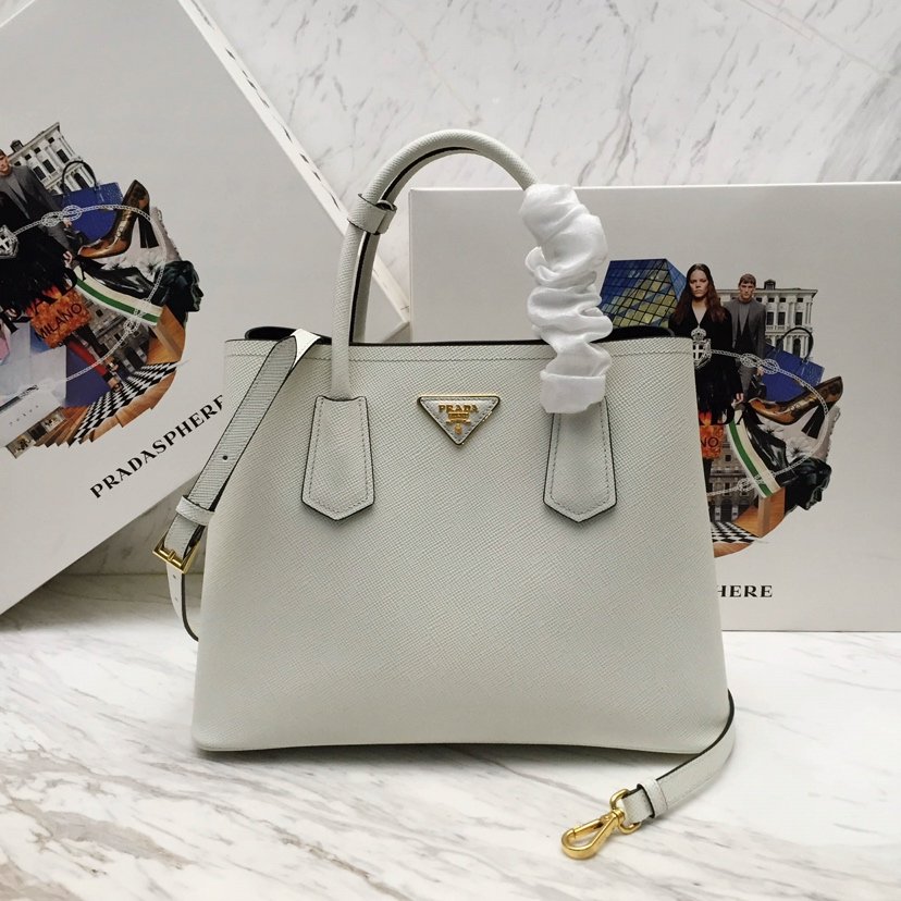 Prada Medium Saffiano Leather Double Bag – White GHW