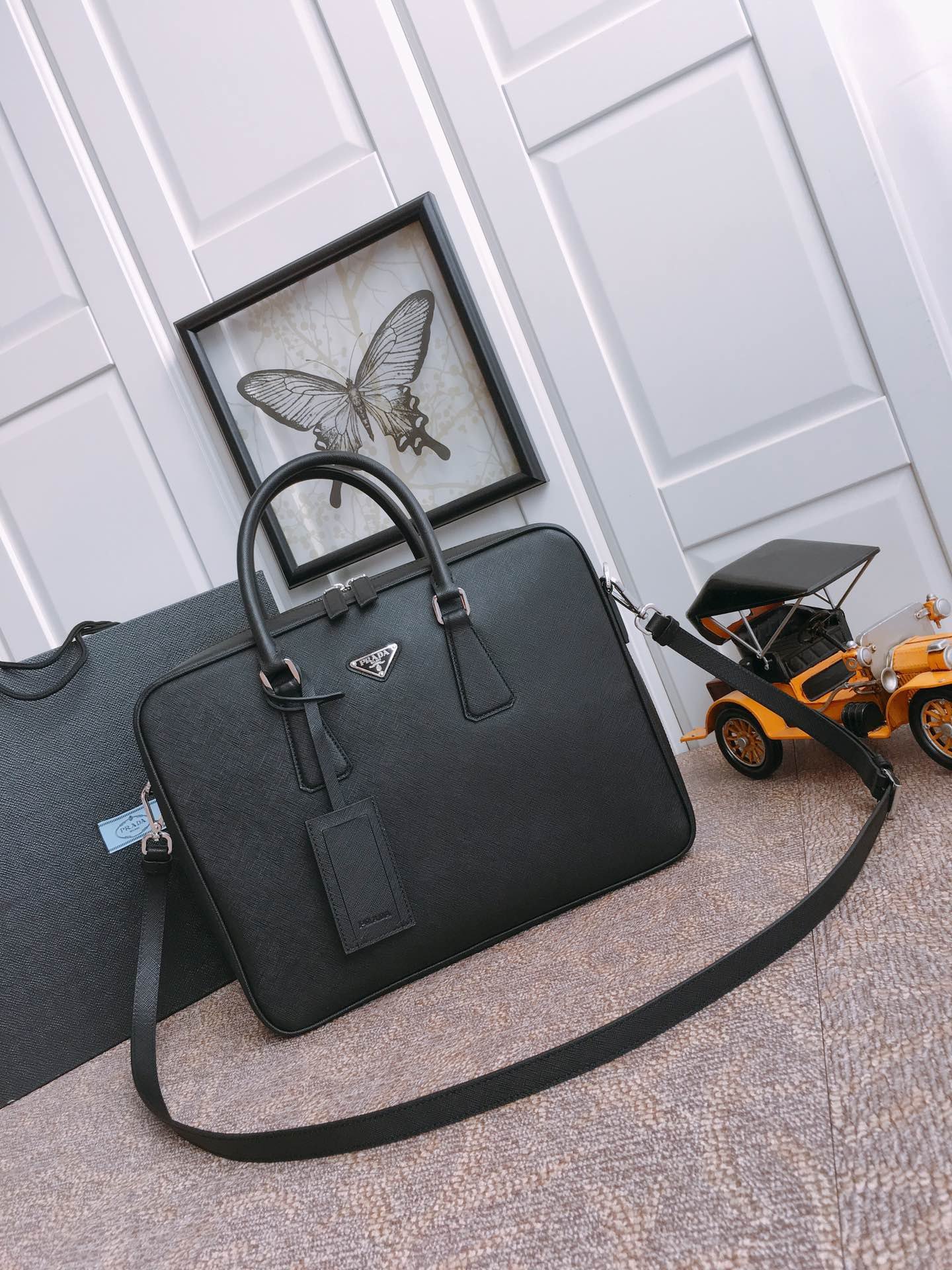 Prada Saffiano Leather Work Bag – Black – SHW 2VE011