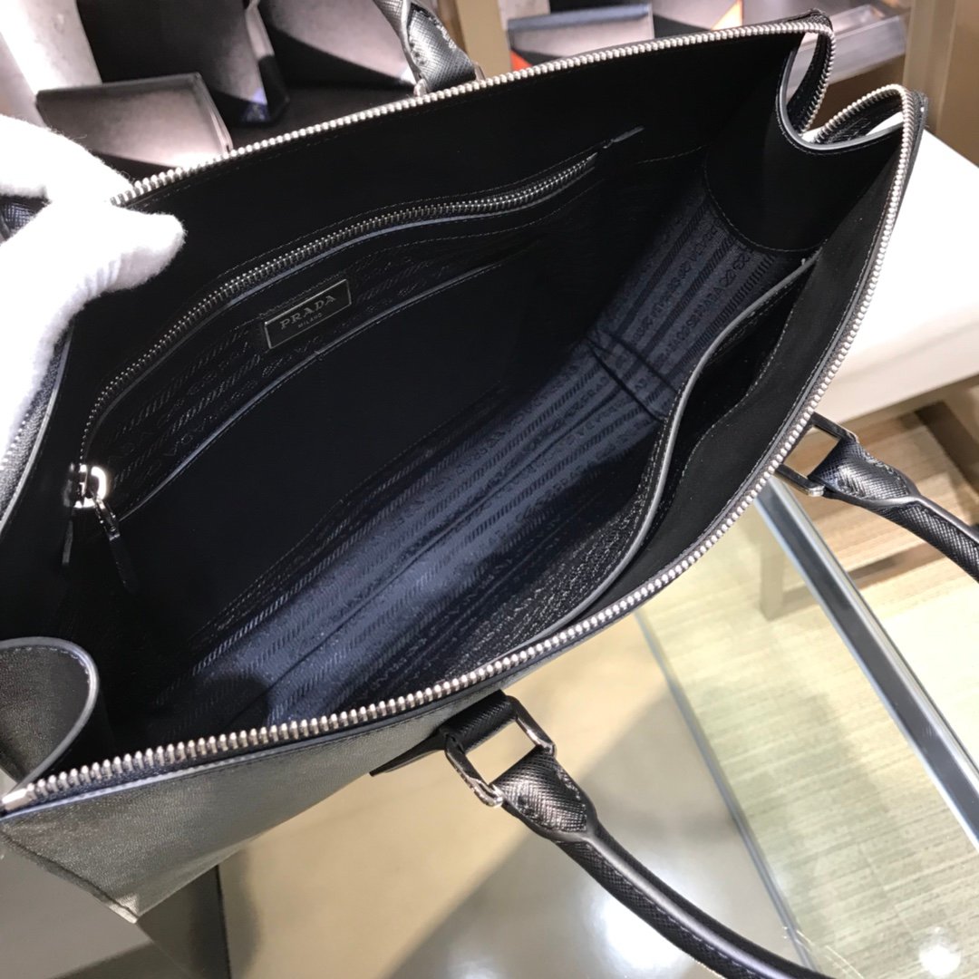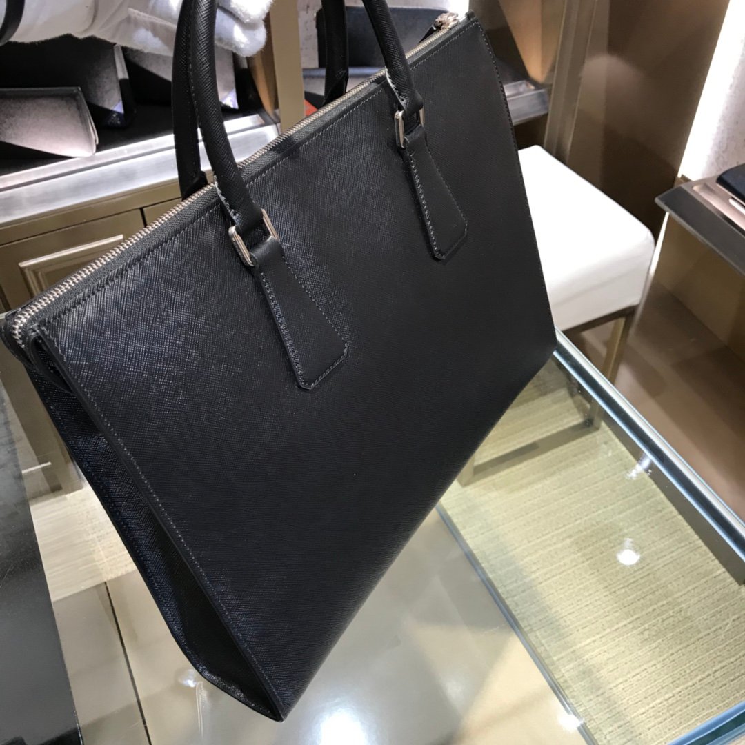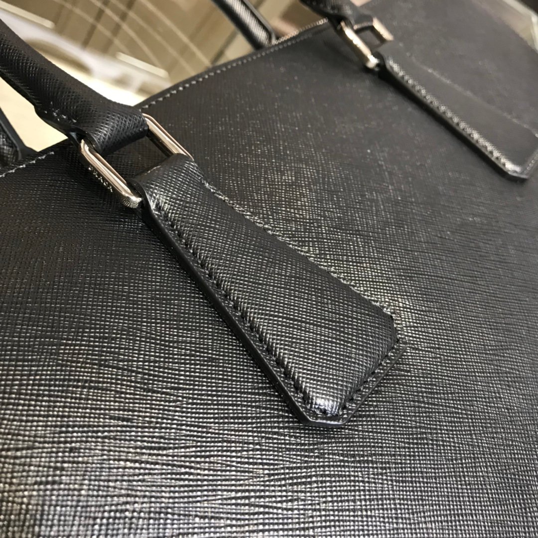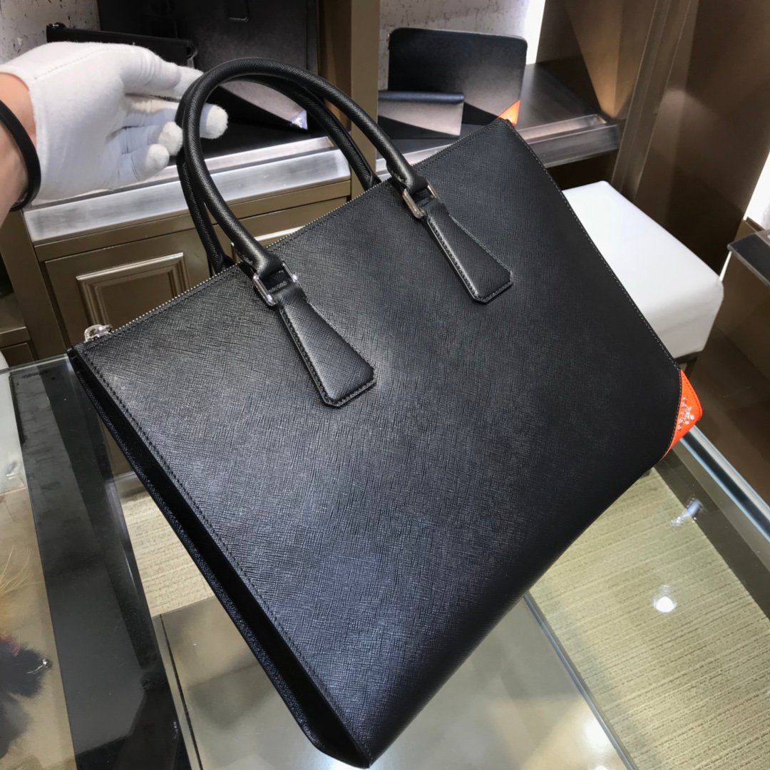 Prada Saffiano Men’s Business Bag – Black – Red SHW logo