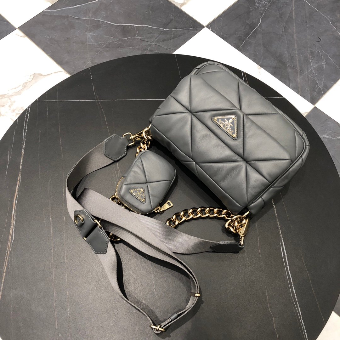 Prada System Small Leather bag – Gray – GHW